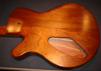 Look at the back of this beautifully carved nylon string electric. If you look close, you can see the detailed bracing on the inside. |